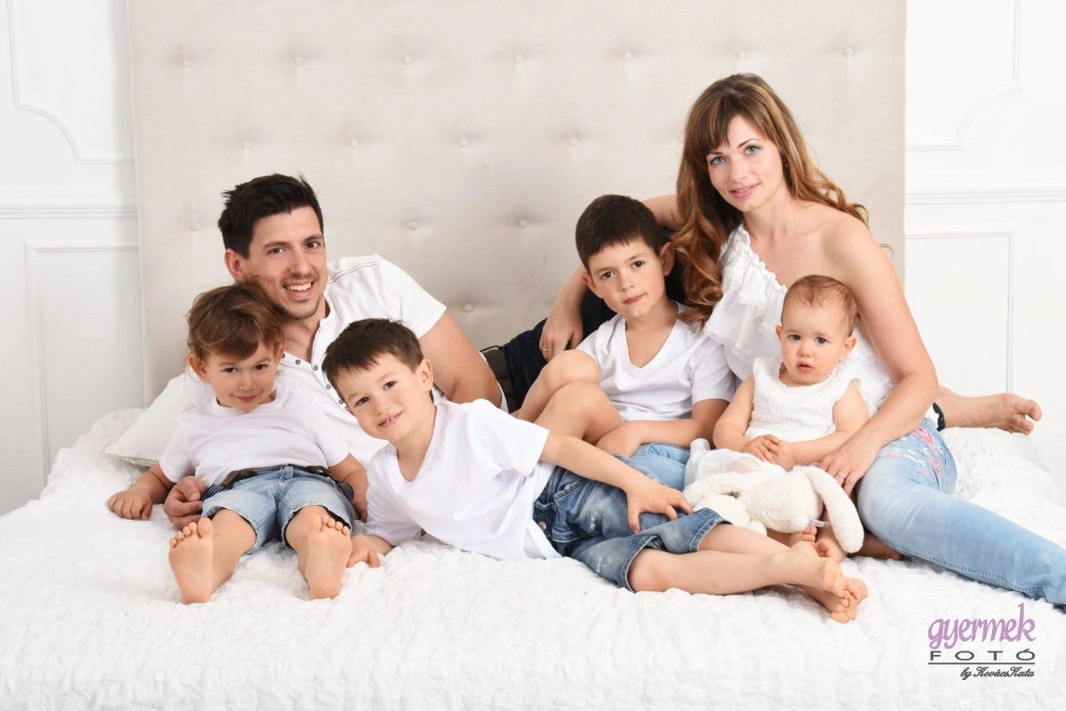 Ha az öltözéketeket összehangoltátok, akkor még biztosabb a jó eredmény, az olyan képek, amin mindenki jól néz ki. Biztosítok átöltözési lehetőséget is, így ha többféle stílust szeretnétek, érdemes többféle hátteret is választani hozzá. Kollégáim segítenek a frizura és a gallérok megigazításában. Én megfogom a pillanatot, elkapom, amikor mindenki rám néz és mosolyog, hiszen ez a dolgom. Nálam garantált a jó eredmény, mert itt gondoskodom róla, hogy a család minden tagja jól érezze magát. Ez fog érződni, visszaköszönni a képekről.